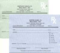 Indiana/Kentucky State mandated prescription blanks with several security features built into the design.